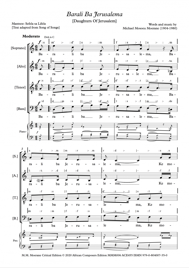 ACE published all 51 extant works by South African-born composer Michael Mosoeu Moerane (1904-1980) in 2020, both individually and in a complete edition.