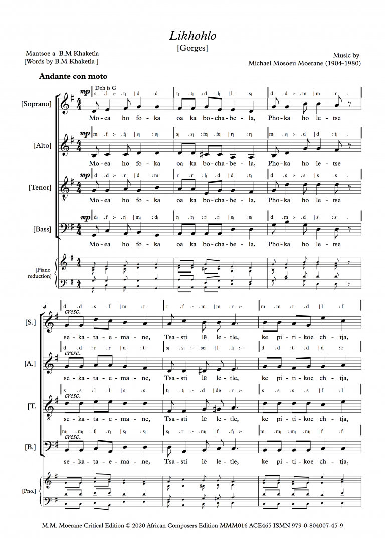 ACE published all 51 extant works by South African-born composer Michael Mosoeu Moerane (1904-1980) in 2020, both individually and in a complete edition.