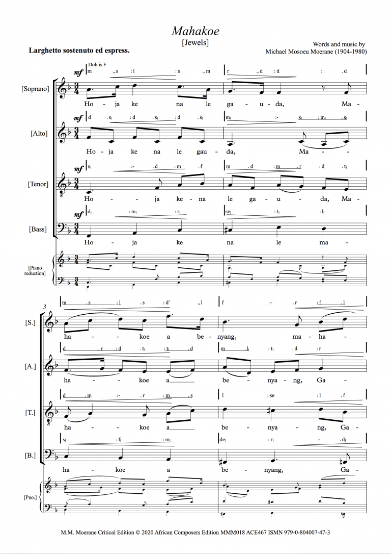 ACE’s mission is to give African composers a digital platform and render their music accessible worldwide by providing introductions to works and translating African language texts into English. To marks its 10th anniversary in 2022, ACE will complete a performing edition of music by Surendran Reddy (1962-2010), adding to its existing editions of music by Joshua Pulumo Mohapeloa (1908-1982) and Michael Mosoeu Moerane (1904-1980). The first of several selected works by Justinian Tamusuza (b.1951) has also just been published. Composers who would like to be considered for publication are welcome to contact ACE via the Contact page.