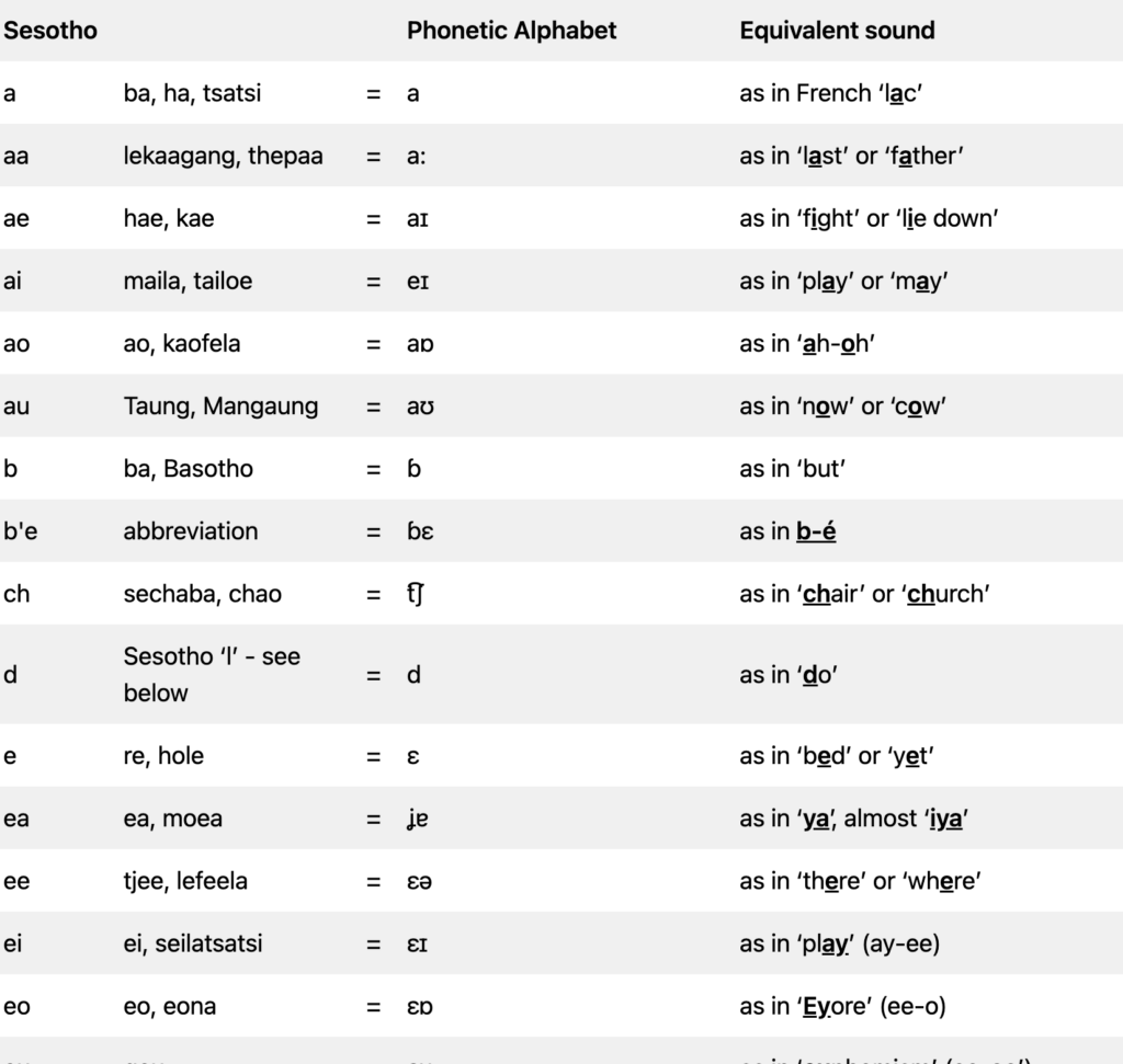 Pronunciation Guide to Sesotho Texts