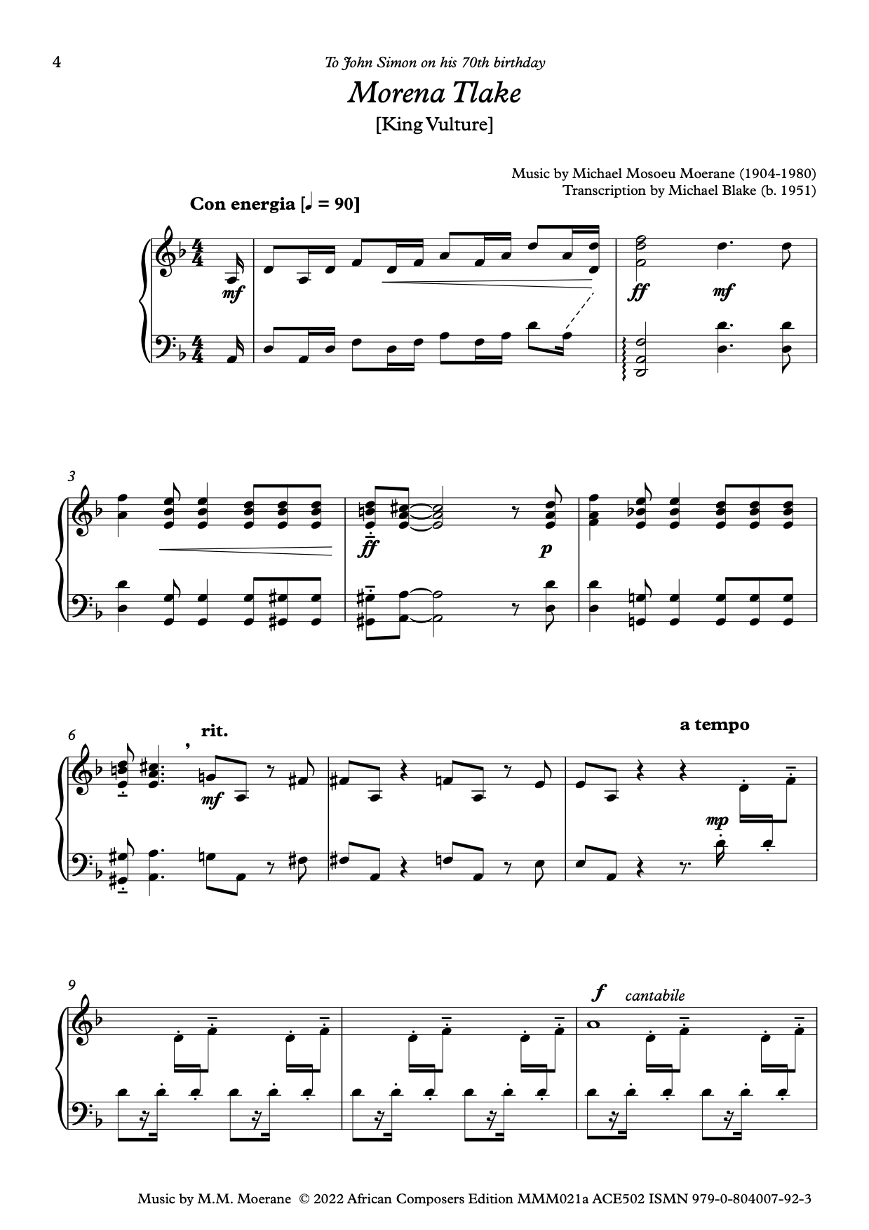 Morena Tlake (piano transcription by Michael Blake)