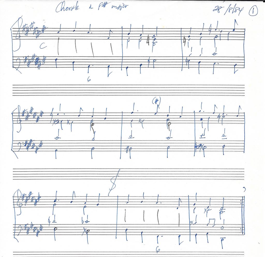 The rather provisional two-page chorale for piano in f-sharp minor and Reddy’s sketches for improvisations on it represent a kind of turning point between the ‘baroque pastiches’ of Reddy’s six baroque suites (1983-85) to the more improvisatory ‘romantic pastiche’ style of his four romantic piano pieces (1985). Even though it only exists as a manuscript draft and the improvisation is incomplete, it is worth studying in the context of Reddy’s early works. The present publication is a facsimile of the original manuscript.