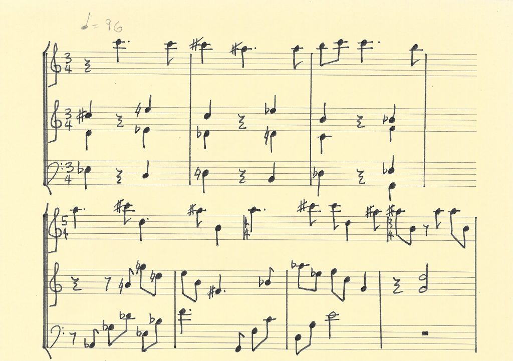 flute variations on an original theme (b-a-c-h influenced) is a seven-page contrapuntal work for flute and piano, composed in serial style. It is published here as a facsimile of a draft manuscript score, since only one page of the original fair copy has survived. The variations were composed c1979 when Reddy was a student at the Royal College of Music, London, almost certainly for his flautist friend Martin Feinstein. It comprises a theme and four variations on the musical letters B-flat, A, C, B-natural and makes a good companion piece to Reddy’s other early works for flute and those based on B-A-C-H.