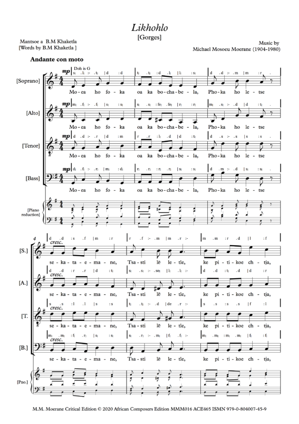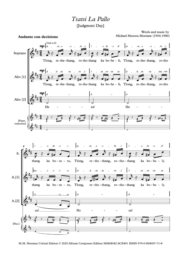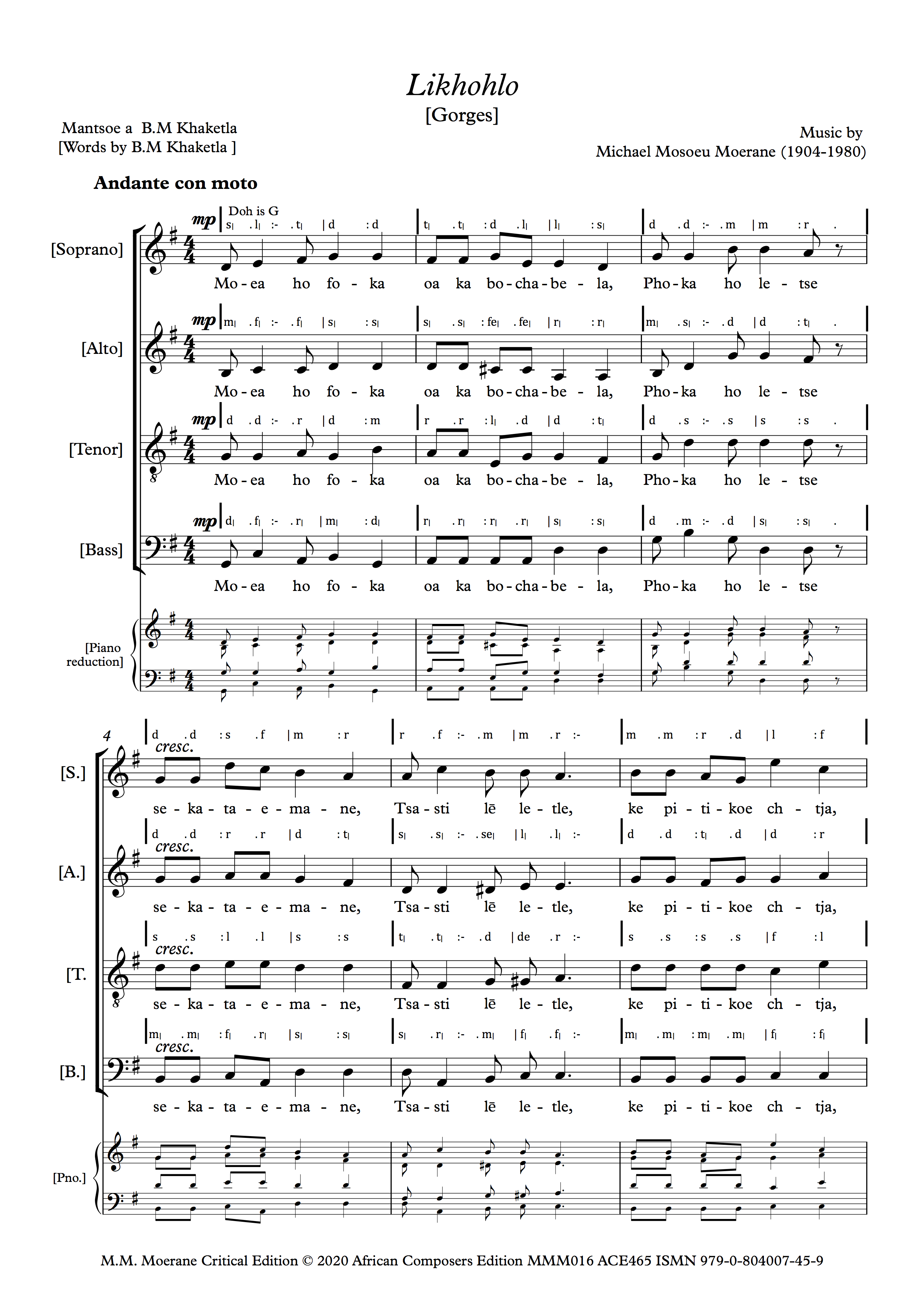 In this rousing, humorous song, the sun is the narrator, declaring himself king of all good things in the world including plants, animals, clouds, heat, and even cold: the king of everything! The sun may control people’s lives, however, but not their opinions of the weather, which is parodied by the sun in the way in which it is often complained about in African communities: it is never just hot or cold, the lyrics of Letsatsi tell us, but always ‘too hot’ or ‘too cold’! People are just never satisfied with the weather. Moerane attributes his lyrics to ‘Setsoto’ (Trad.). In order to help choirs learn this song, a free mp3 of the lyrics spoken by Mpho Ndebele is downloadable when the song is purchased along with a rehearsal mp3 of the song at a slow tempo.
